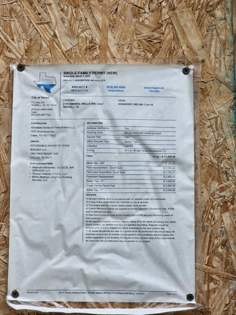 New construction property with major work already completed and inspected.
